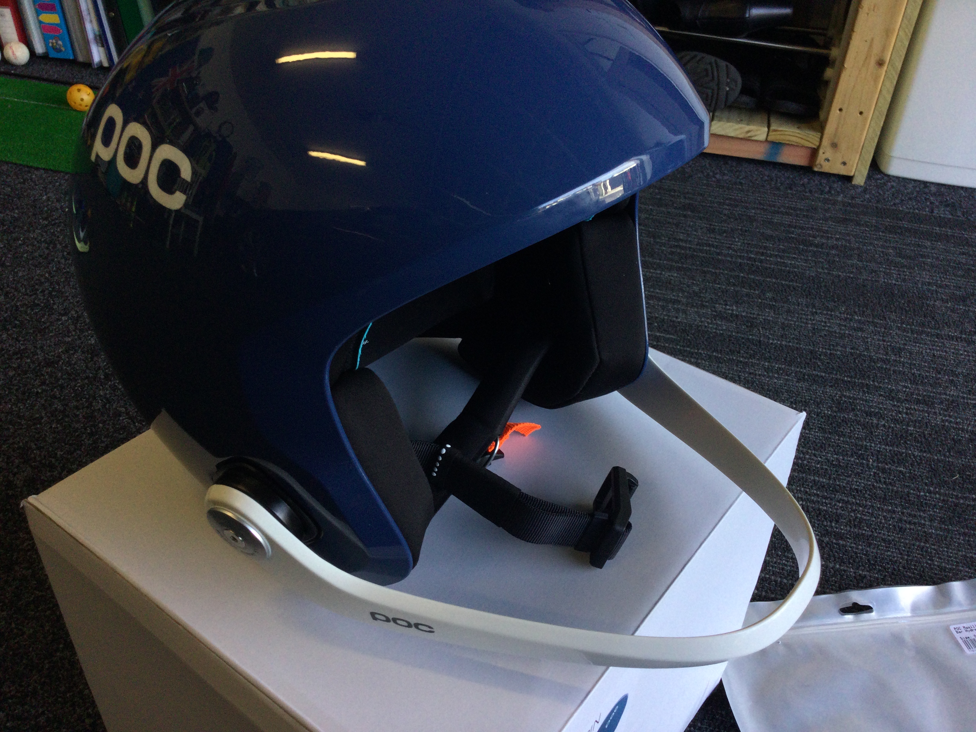 최고급 스키 선수용 헬멧 POC Skull Dura X Spin Helmet - Lead blue 는 충돌시 턱을 안전하게 보호장치(Maxilla Breakaway)인 턱 보호 바(Chin Bar)는 안전을 위해서 투자라고 생각하고 같이 구입함.